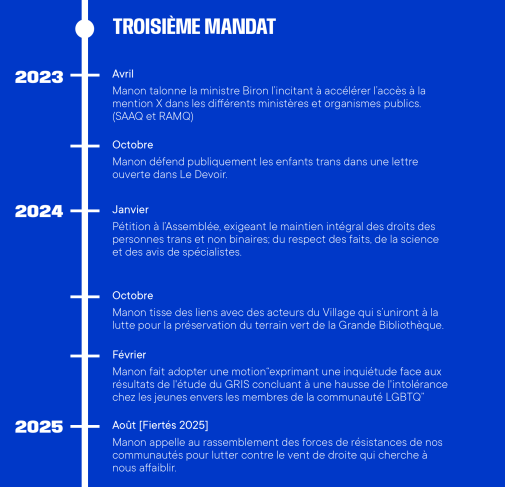 Porter les voix de nos communautés à l’Assemblée nationale. Un combat constant pour qu’on ait le droit d’être qui on est, avec toutes nos différences et avec toute notre dignité. Ça passe par des lois, des Fiertés, des lieux de rencontre, et des organismes pour nous accompagner.